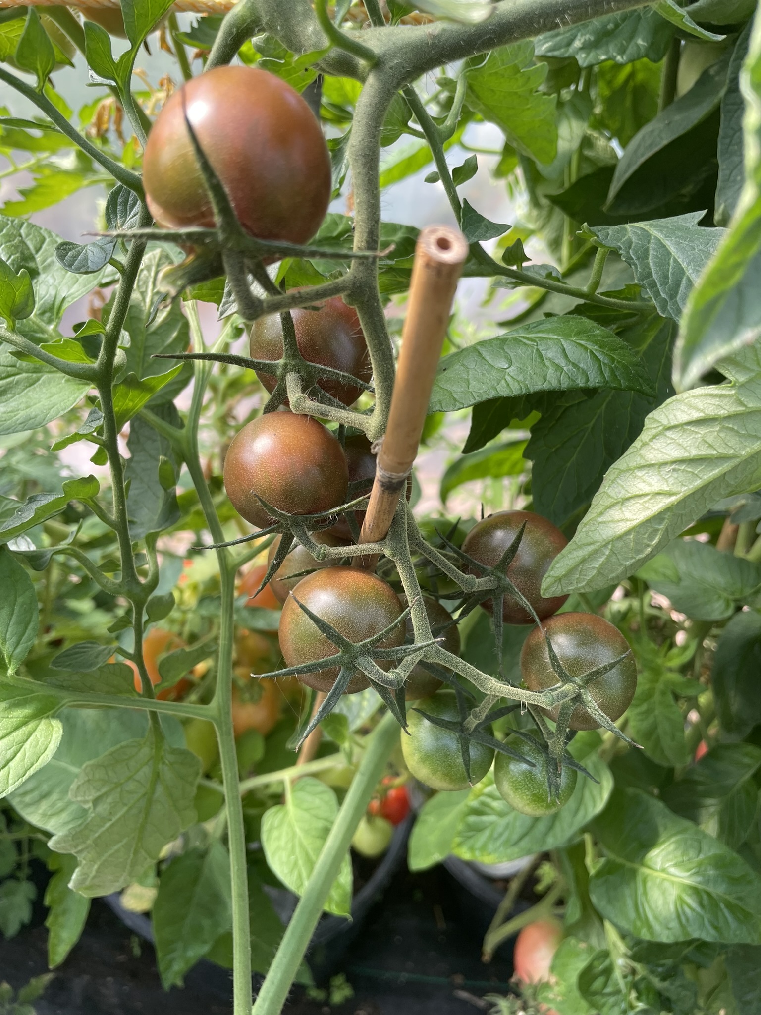 This year has been one of our best yet for tomatoes – and we couldn’t be more delighted! The plants have grown strong and healthy, filling the poly tunnel with a dazzling array of colours, shapes, and flavours. From tiny bursts of sweetness to unusual heritage varieties, every harvest has felt like opening a treasure chest.